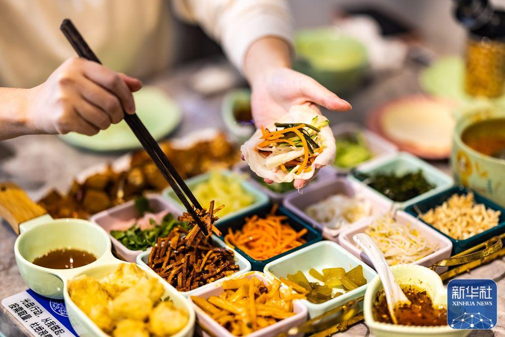1月23日,人们在贵州省贵阳市南明区“青云市集”品尝特色美食“烙锅”。新华社记者 陶亮 摄